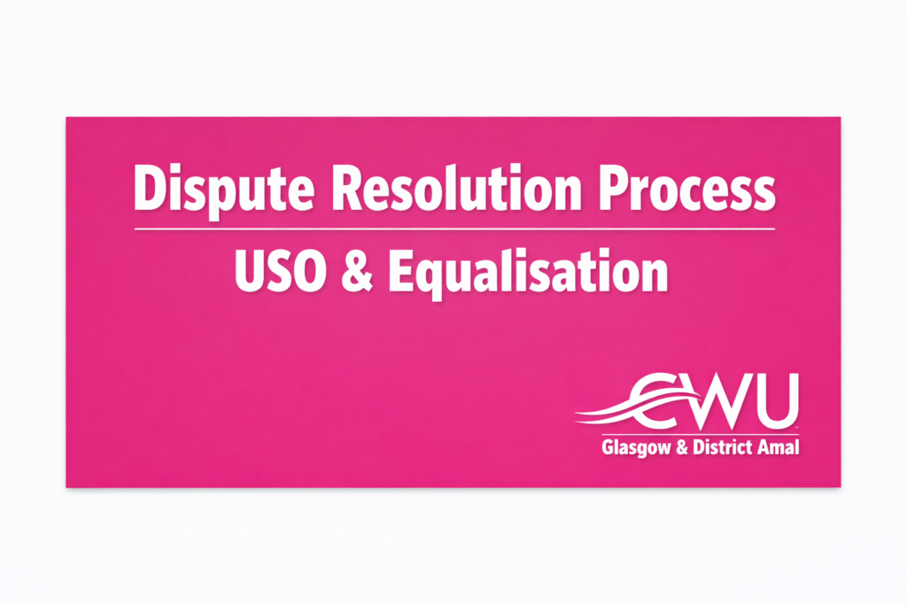 Royal Mail’s communication also states that the CWU’s proposal on equalisation is unaffordable. The CWU position remains that EP agreed to equalise new entrants’ pay, terms and conditions over an agreed career path, including a first step backdated to
